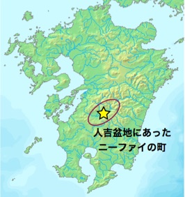 ニーファイの町はおそらく熊本県の山地の球磨郡(歴史の証拠三十五)人吉盆地にあったと思われます。歴史の流れにつれてニーファイの地が拡大して行きましたが、この盆地は以前のニーファイの地の位置だったと思われます。ニーファイ人は紀元前580年から紀元前210年までにこの土地を所有していました。その後レーマン人の領土になっていました。これらの日付については歴史の証拠一の説明の5番目に情報があります。