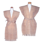 「魏志倭人伝には、男は布を身体に巻き付けただけ(横幅衣)、女は布の真ん中に穴をあけ、すっぽりと首からかぶったもの(貫頭衣)を着ていると書かれています。吉野ヶ里遺跡では、甕棺の中から麻や絹の布片が見つかっています。当時は、身分によって服の素材や形が違っていたようです。」